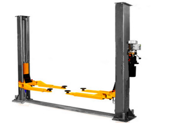 雙柱式舉升機屬于一種特殊液壓升降機,有對稱式和非對稱式兩種。對稱式舉升機四根臂的臂長大致相等,這樣使得汽車中心(或質心)處于立柱的中間位置,對于皮卡和箱式貨車等類型的汽車的日常維修來說這種對稱式舉升機可能是很好的選擇。但是對于一些柱間寬度不夠大的對稱式雙柱式舉升機來說,汽車舉升后不能打開車門是一個很大的缺點。非對稱式舉升機的立柱向后旋轉了一個角度(大約30°),并且前臂比后臂稍微短一些。當把汽車停放到這種非對稱式的舉升機適當位置時,車的位置就向后移動了一些,因此,我們就很容易地從車門進出。而且,這種非對稱式舉升機轉動的立柱,可以確保車輛的重心安全地定位在立柱之間。